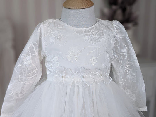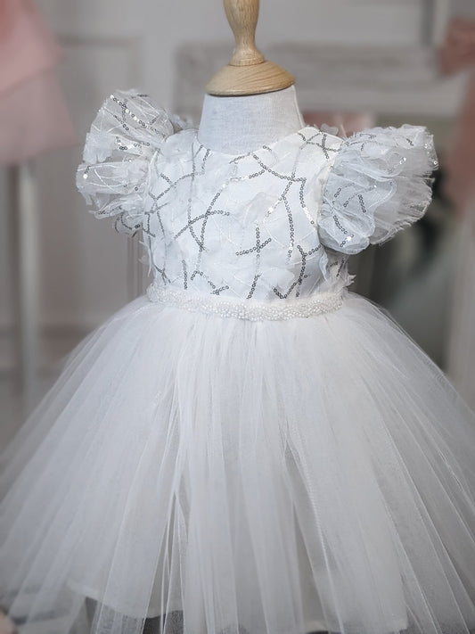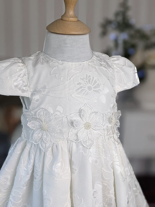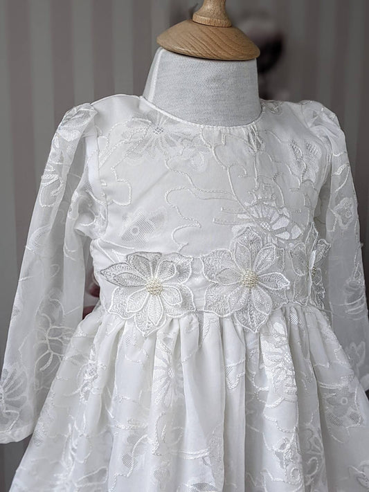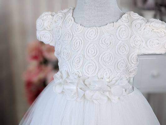 Bela haljina sa 3d cvetovima i šljokicama