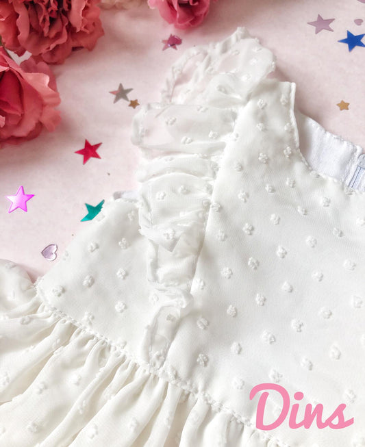Bela pamučna haljina sa tufnicama u tkanju