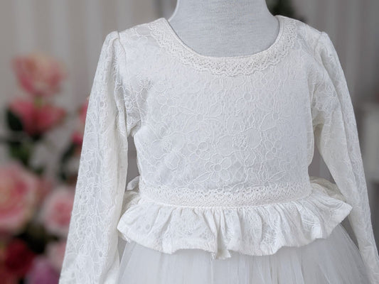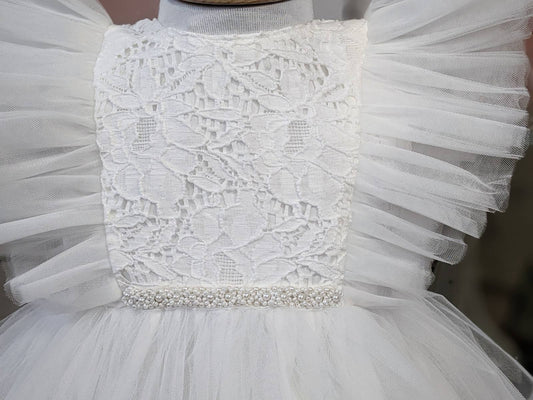 Bela haljina od efektne čipke i tila