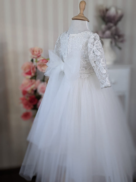 Bela duga haljina od reljefne čipke i tila