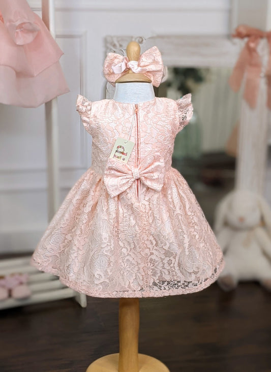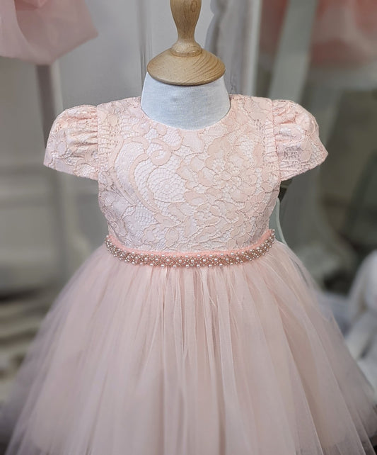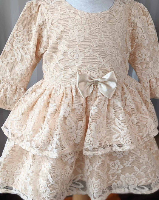 Svetlo bež haljina od čipke sa zlatnim sjajem