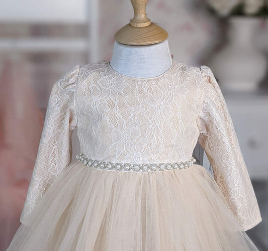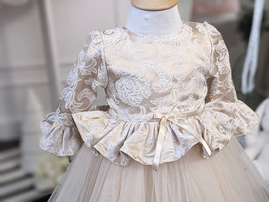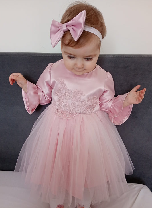 Haljina od roze satena i tila sa vezenom aplikacijom-poslednji komad