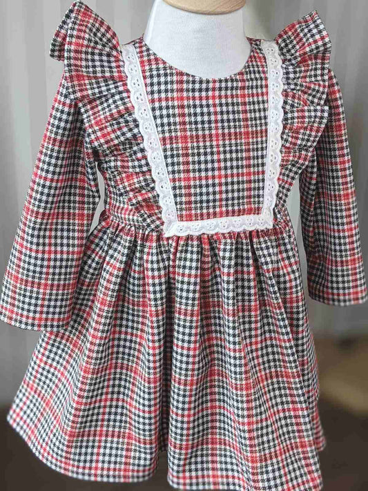 Haljina od crvenog škotskog karoa sa spuštenim strukom