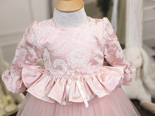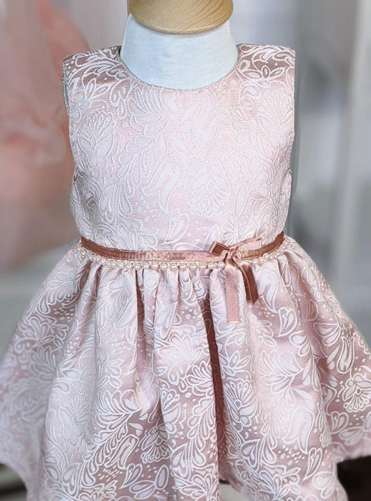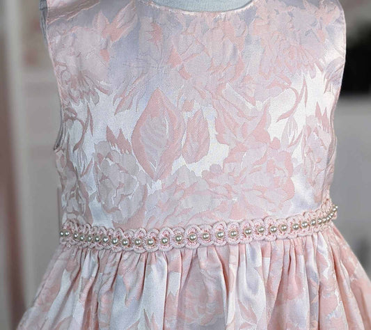 (Haljina u nežnoj roze boji sa cvetovima u tkanju