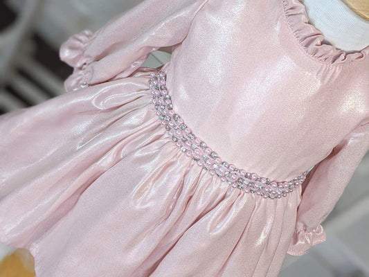 Haljina od vrlo mekanog sjajnog materijala u nežnoj roze boji