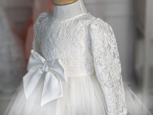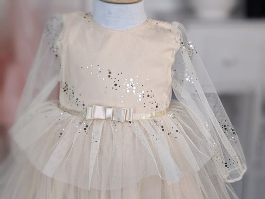 Haljina od svetlo bež čipke sa diskretnim sjajem