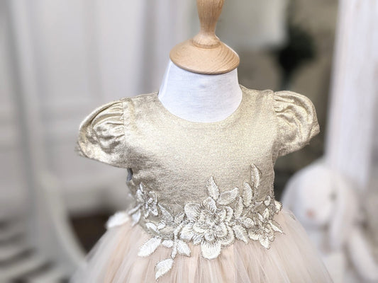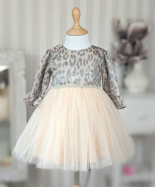 Haljina od zlatnog animal dezena i bež tila sa 3/4 rukavima