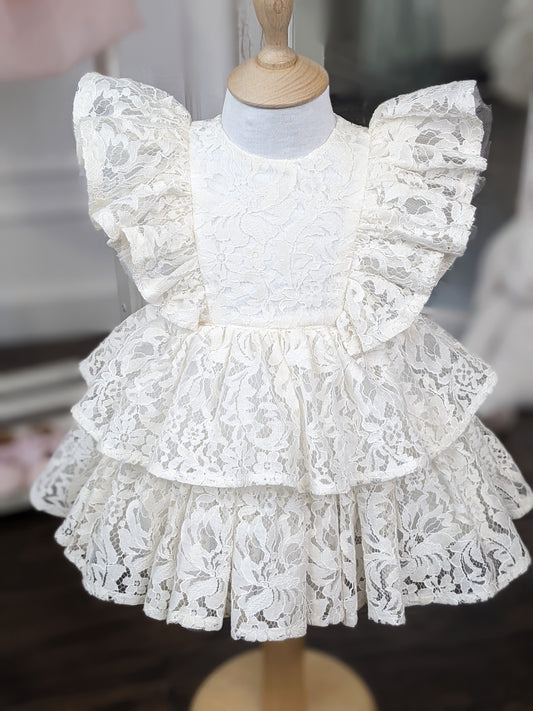 Haljina od bele čipke i tila sa 3/4 rukavima
