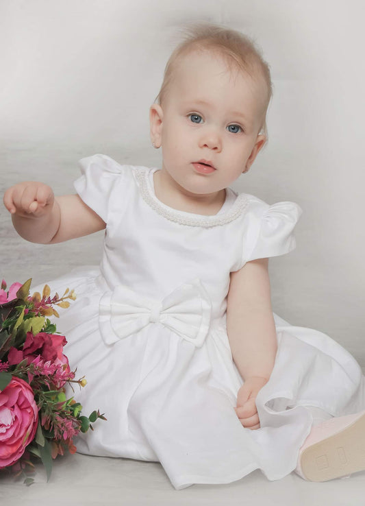 Haljina od belog sateniziranog pamuka sa kratkim rukavima