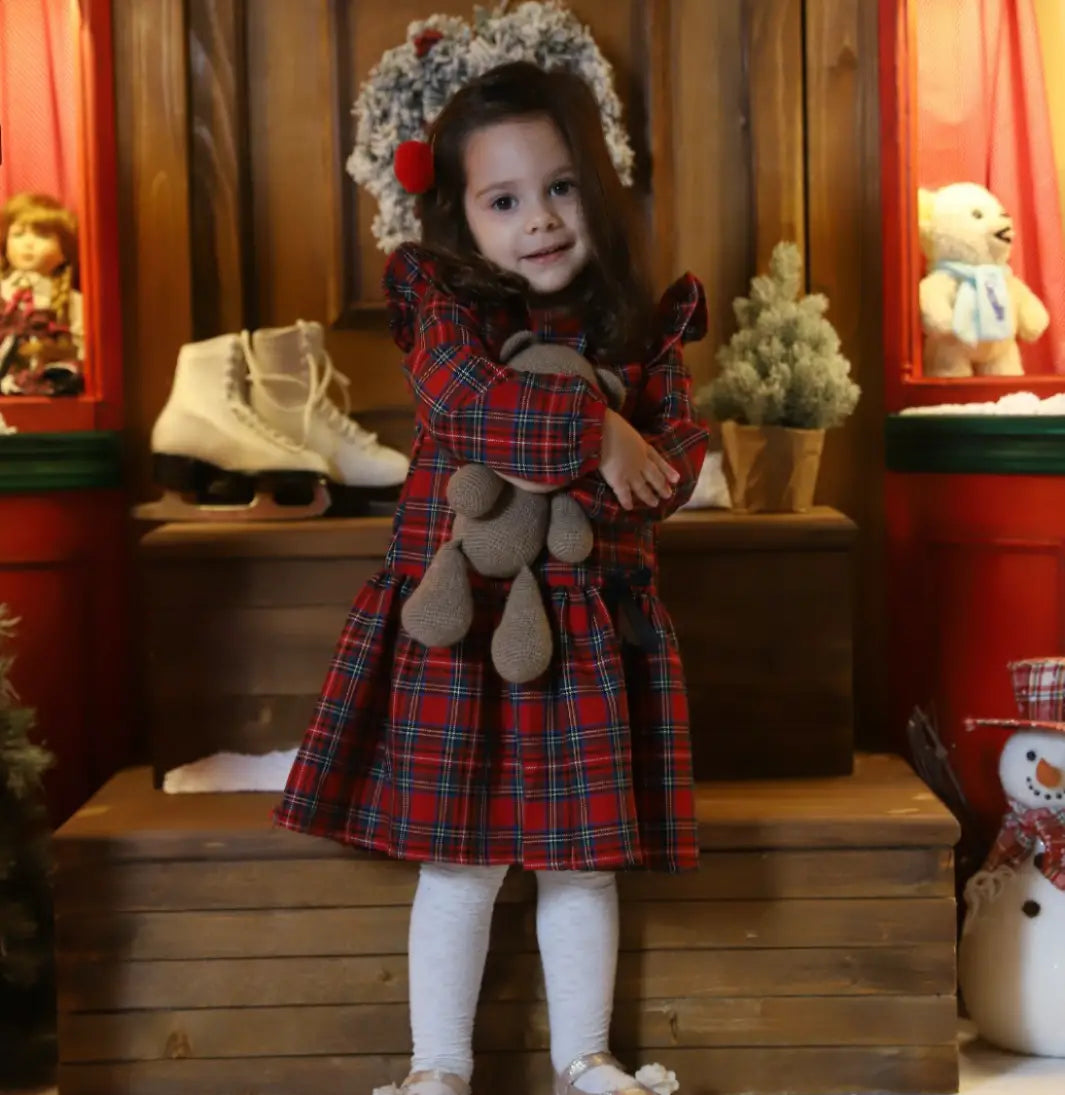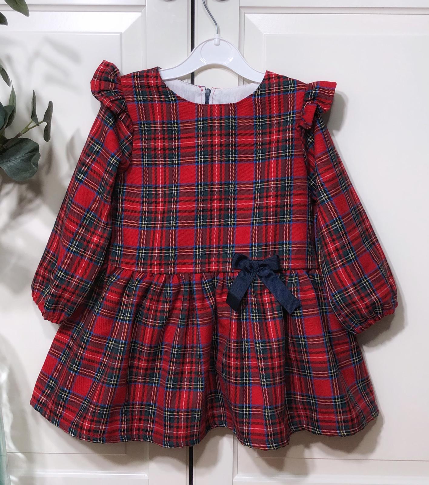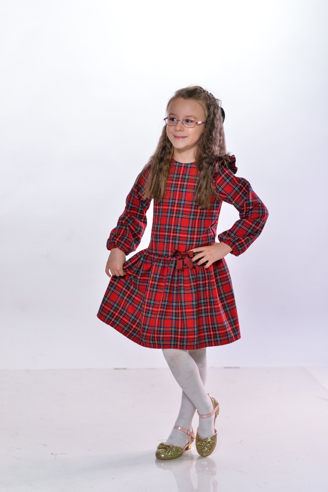 Haljina od crvenog škotskog karoa sa spuštenim strukom