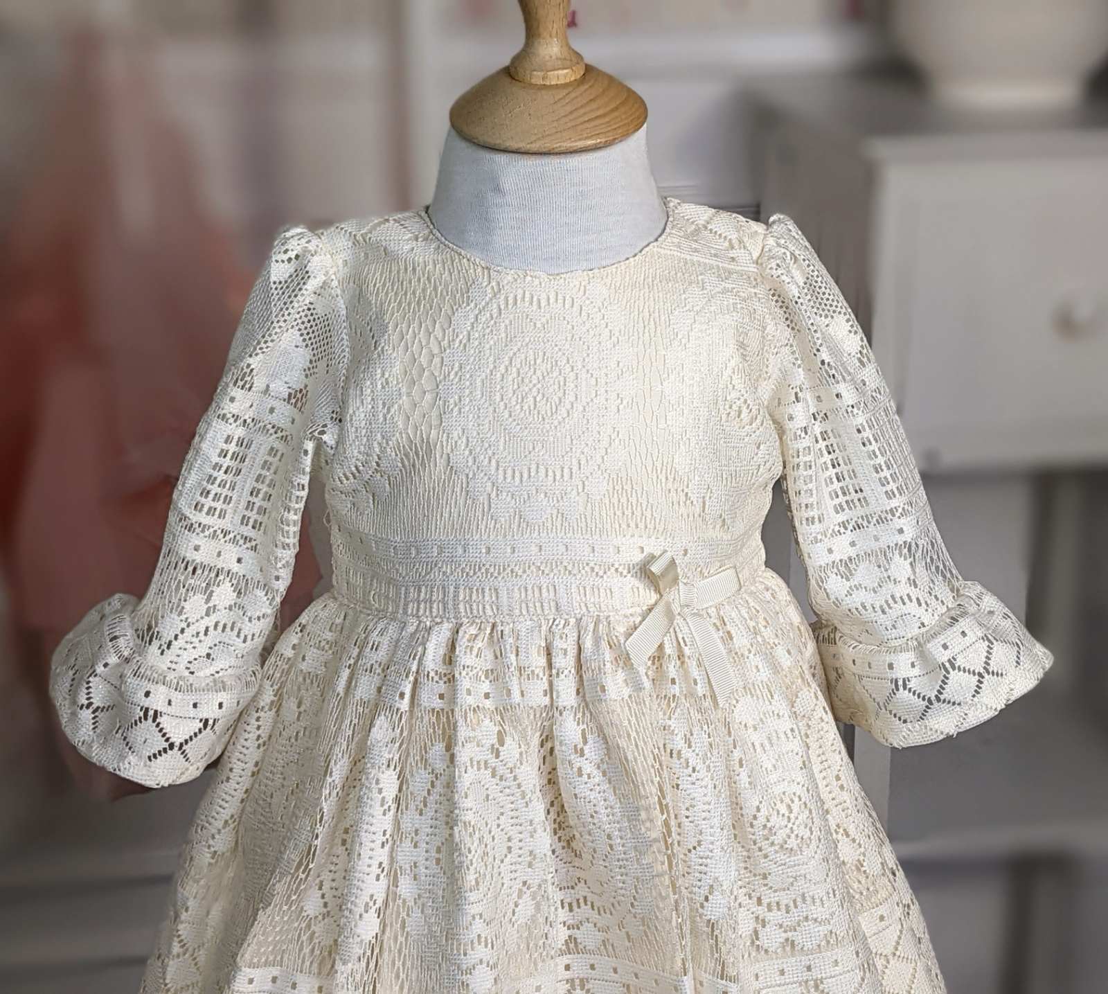 Haljina od svetlo bež čipke sa diskretnim sjajem