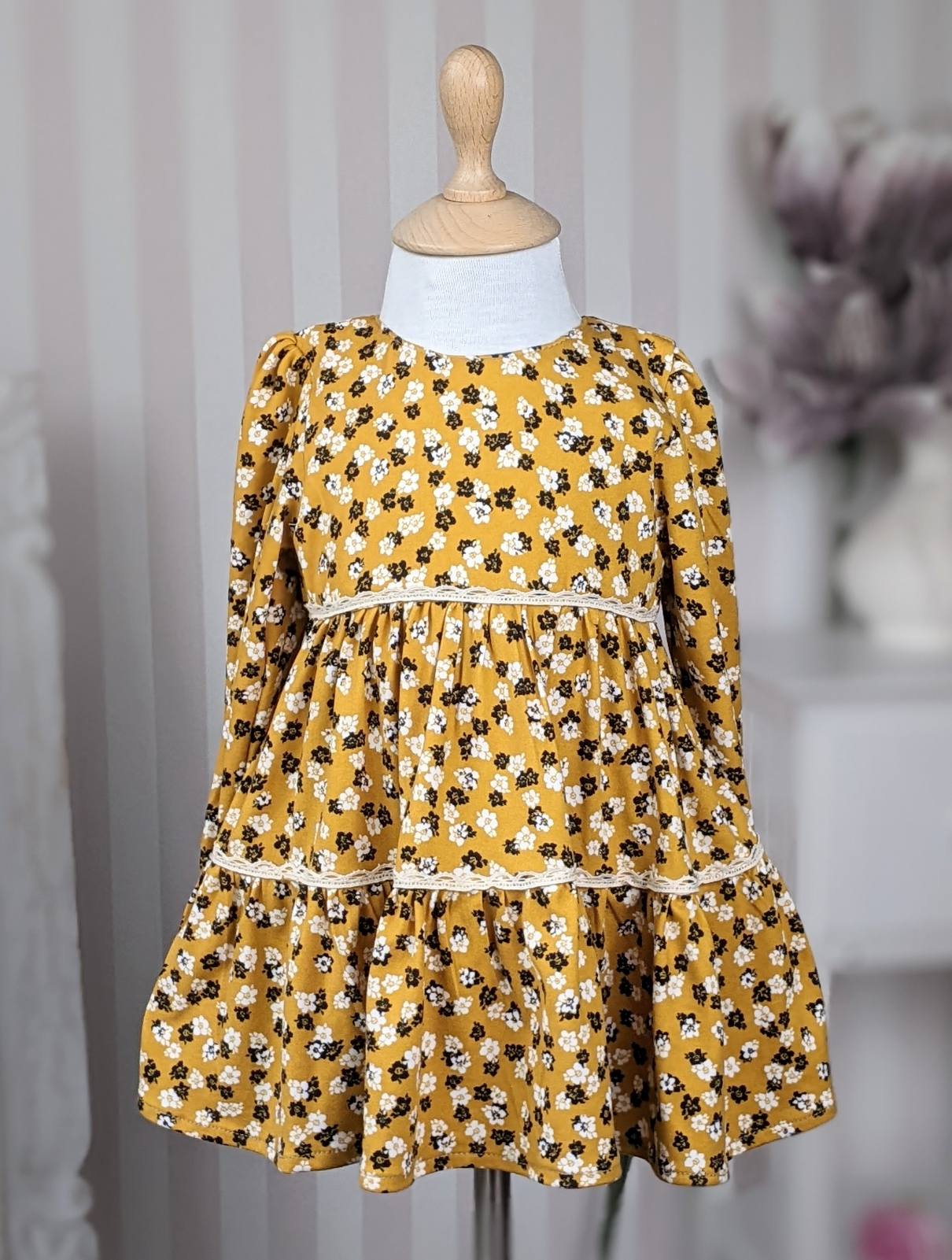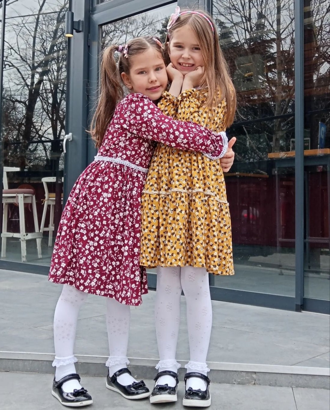 Haljina u cvetnom dezenu u svim dečijim velilčinama. Materijal je tanak, mekan i rastegljiv. Gornji deo haljine je postavljen pamučnim materijalom. Haljinu možemo uraditi i sa kratkim rukavom. Za sve korekcije kontaktirajte nas porukom preko društvenih mreža. Pozadi je dugačak rajfešlus. U prilogu je Vodič za veličine gde možete proveriti obim struka i dužinu haljine i tako izabrati odgovarajući broj. Klikom na izabranu veličinu dobijete cenu za taj broj