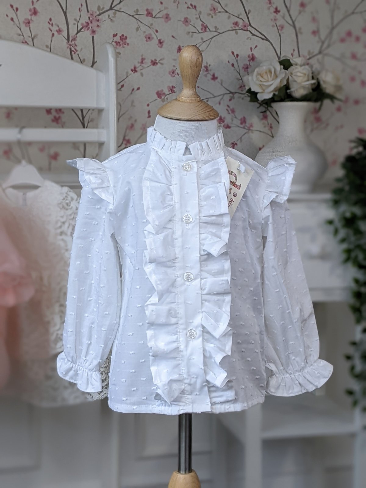 Bela pamučna košulja sa tufnicama u tkanju